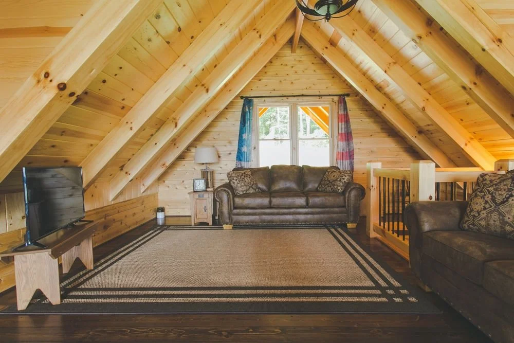 Insulated Log Roof System with Square Rafters and Tongue and Groove Barn Siding