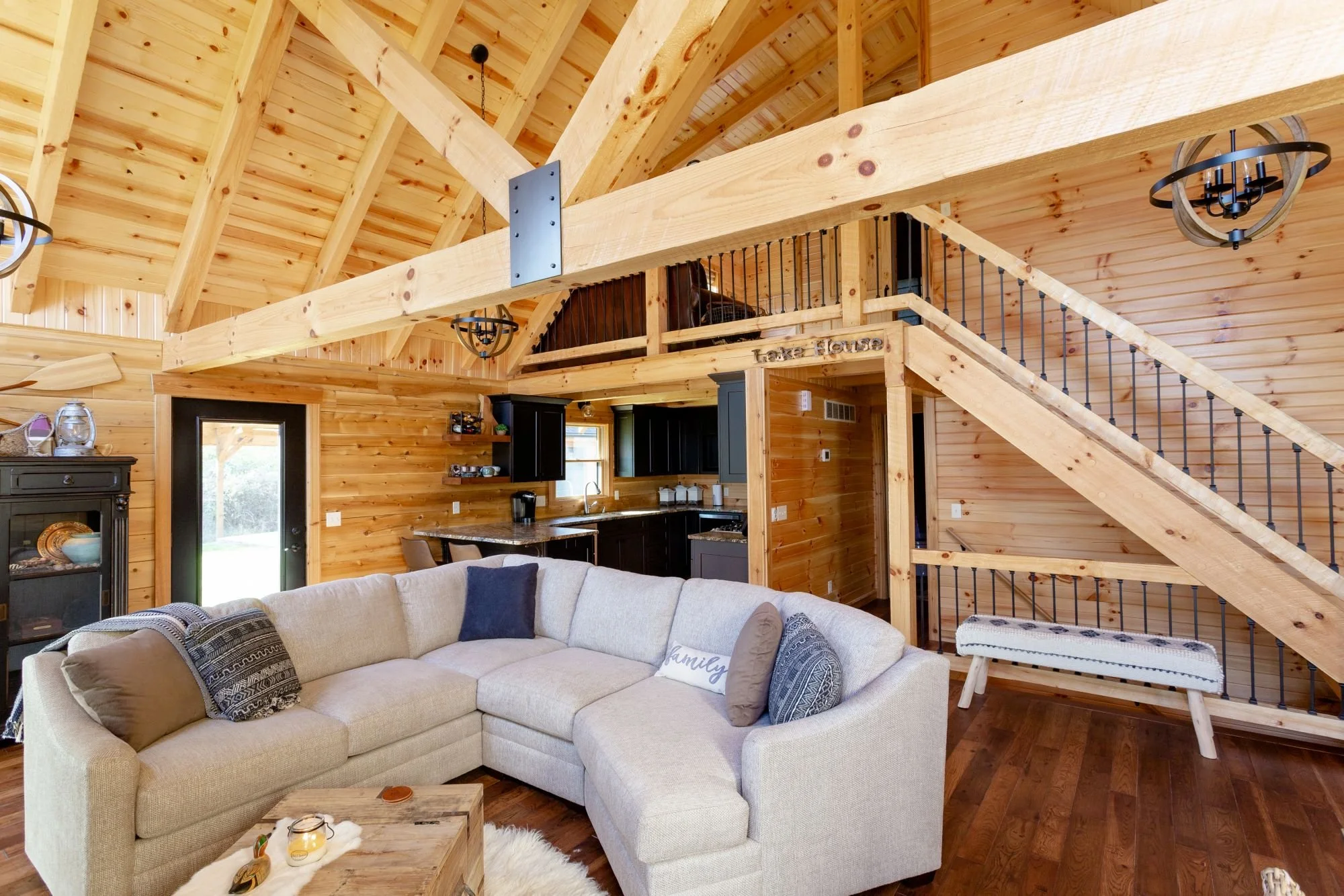 This custom log home is built with 8" x 6" White Cedar Square Logs finished with Dovetail Corners. With an open floor plan, cathedral ceilings and tons of natural light, this home feels much larger than 1,300 square feet!