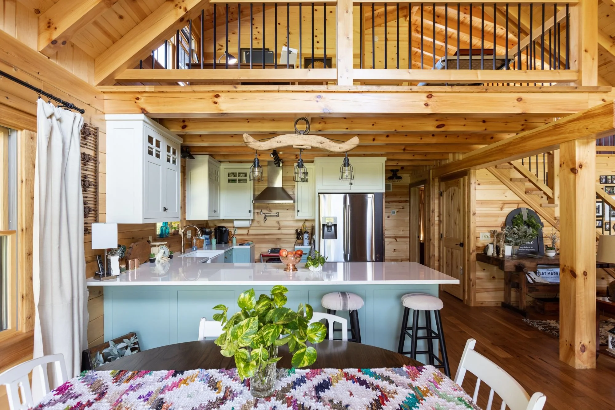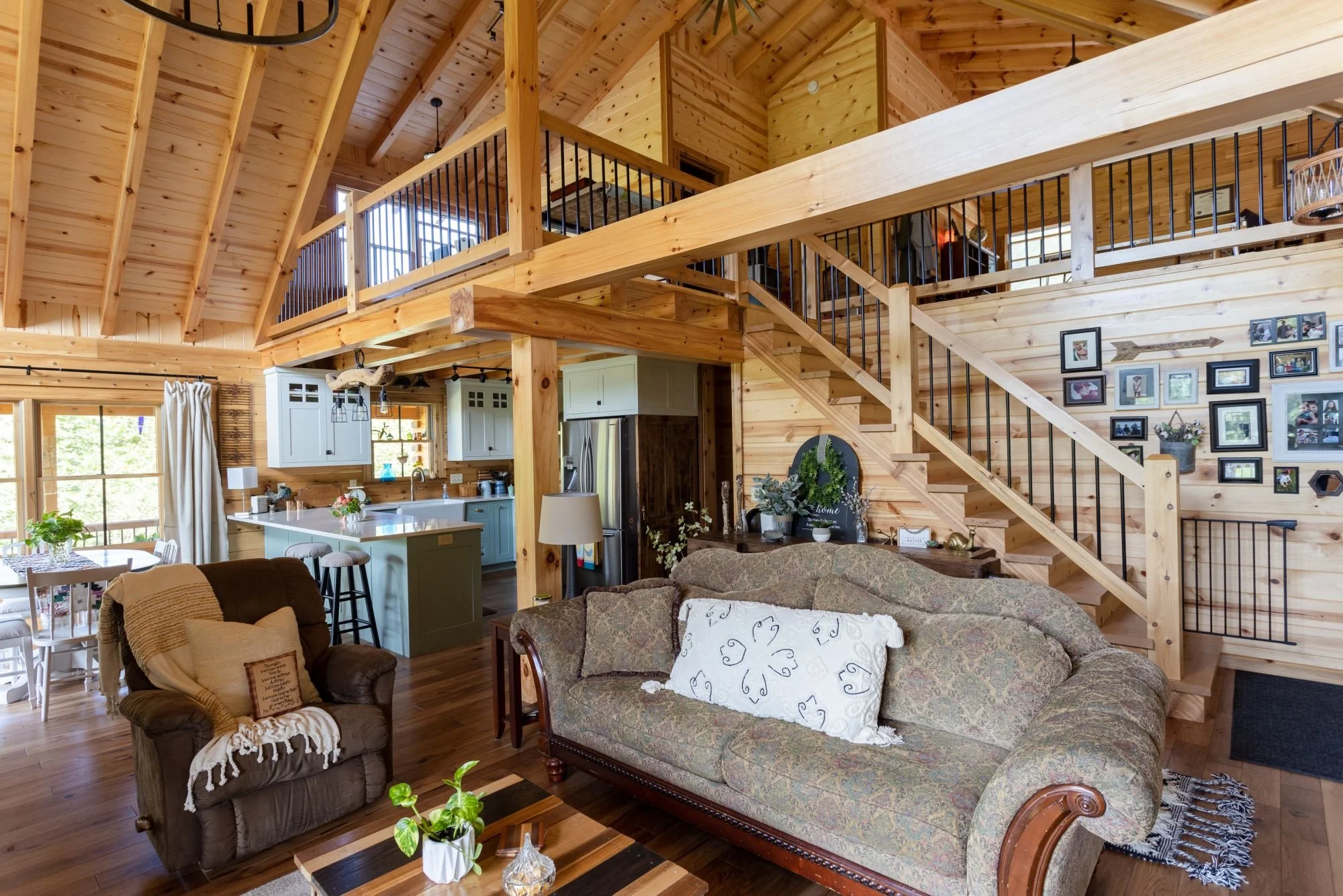 This beautiful custom log home was built with 8" x 8" Square Northern White Cedar Log. This home features a open loft for some more space, as well as a open concept from kitchen to the great room to make the space seem bigger.
