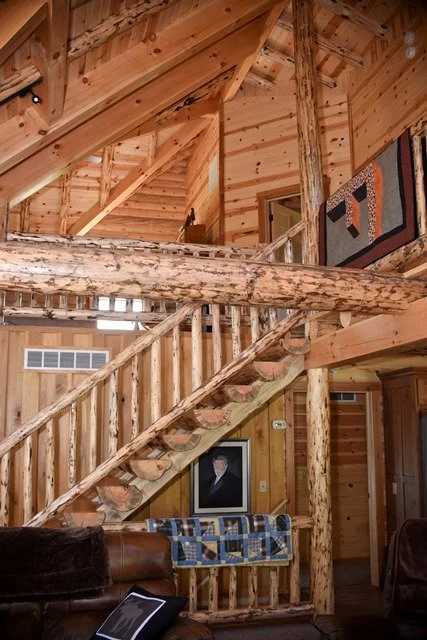 This log home was built in Northwestern Ohio with 6" x 8" Round Rustic Lodgepole Pine Logs. The interior walls are Poplar Rustic B&D Batton. The great room and master bath walls are covered with Pine Tongue and Groove Barn Siding.