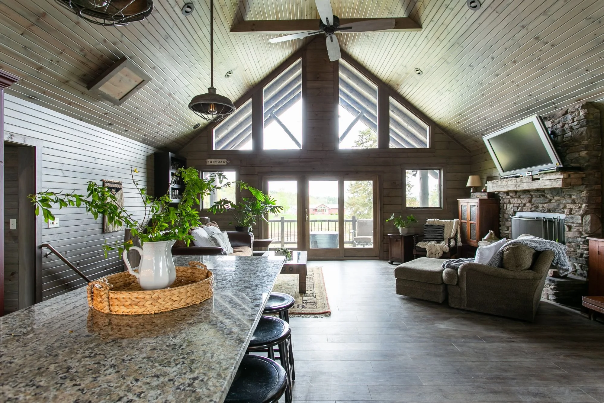 This gray toned home sits proudly on the lake with an amazing outdoor space that is perfect for summertime. Between its cozy neutral colors and the view from the front porch- this home takes our breath away. With a classic open floor plan and a finished out basement, this home has plenty of space without being super big!