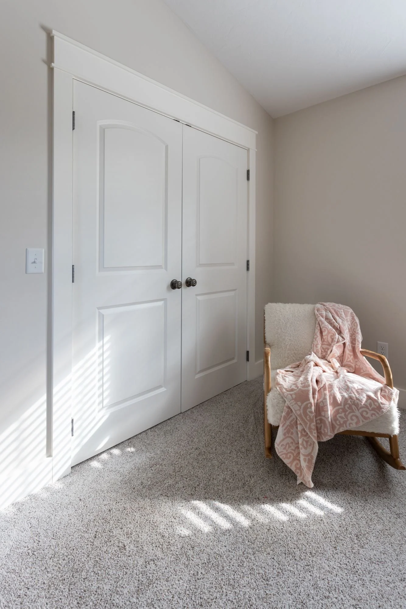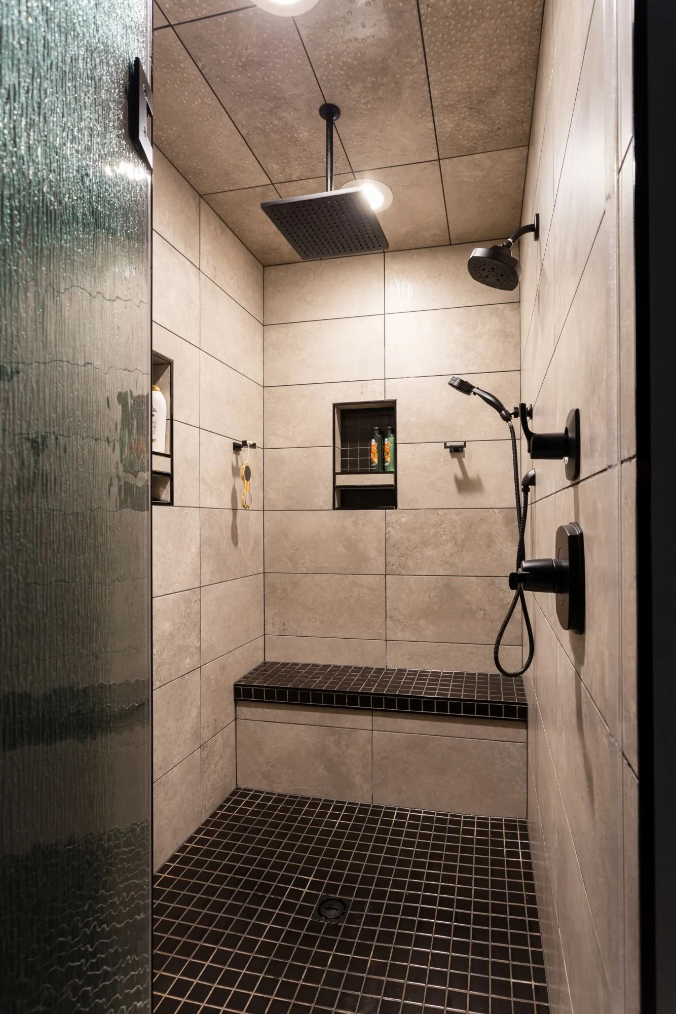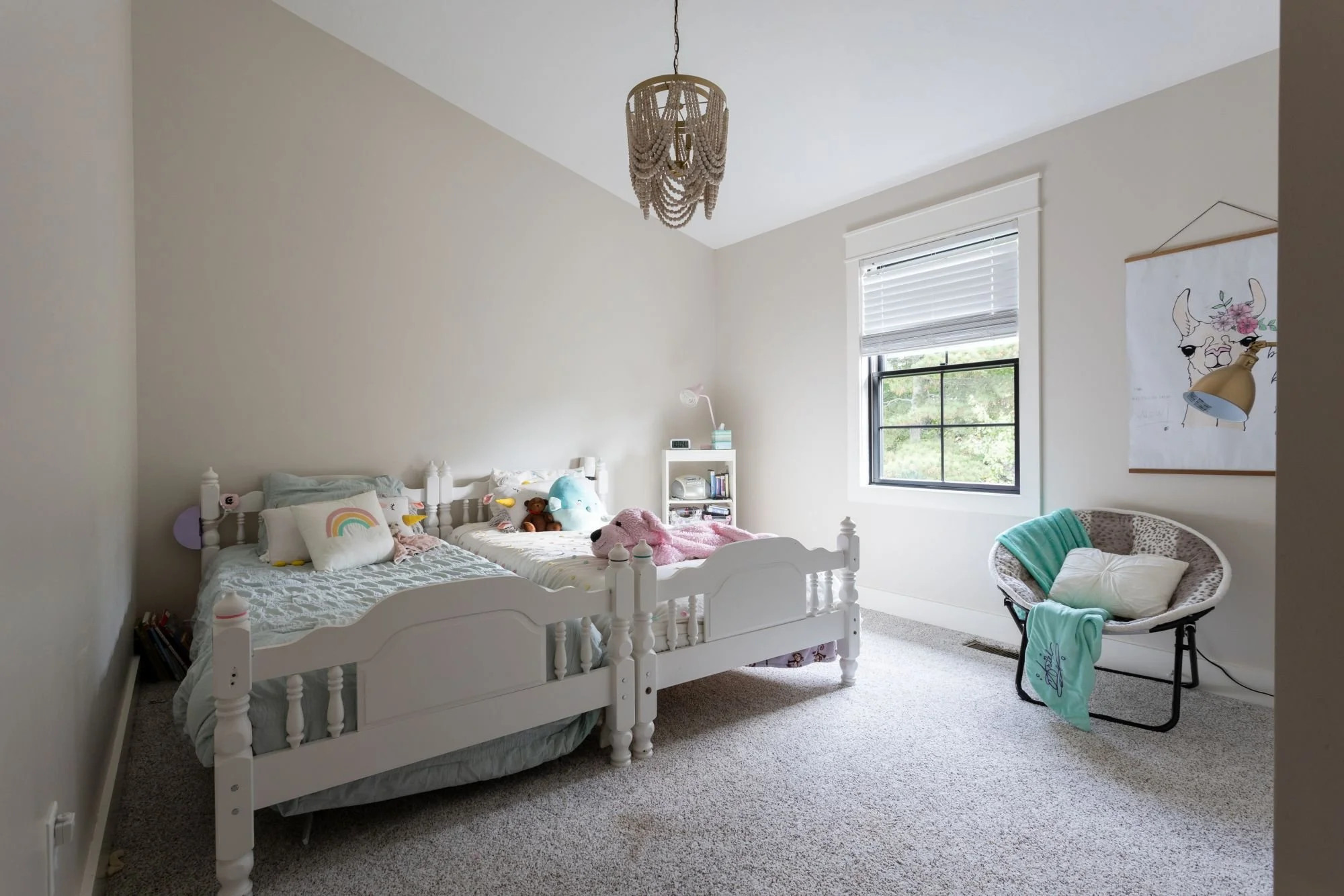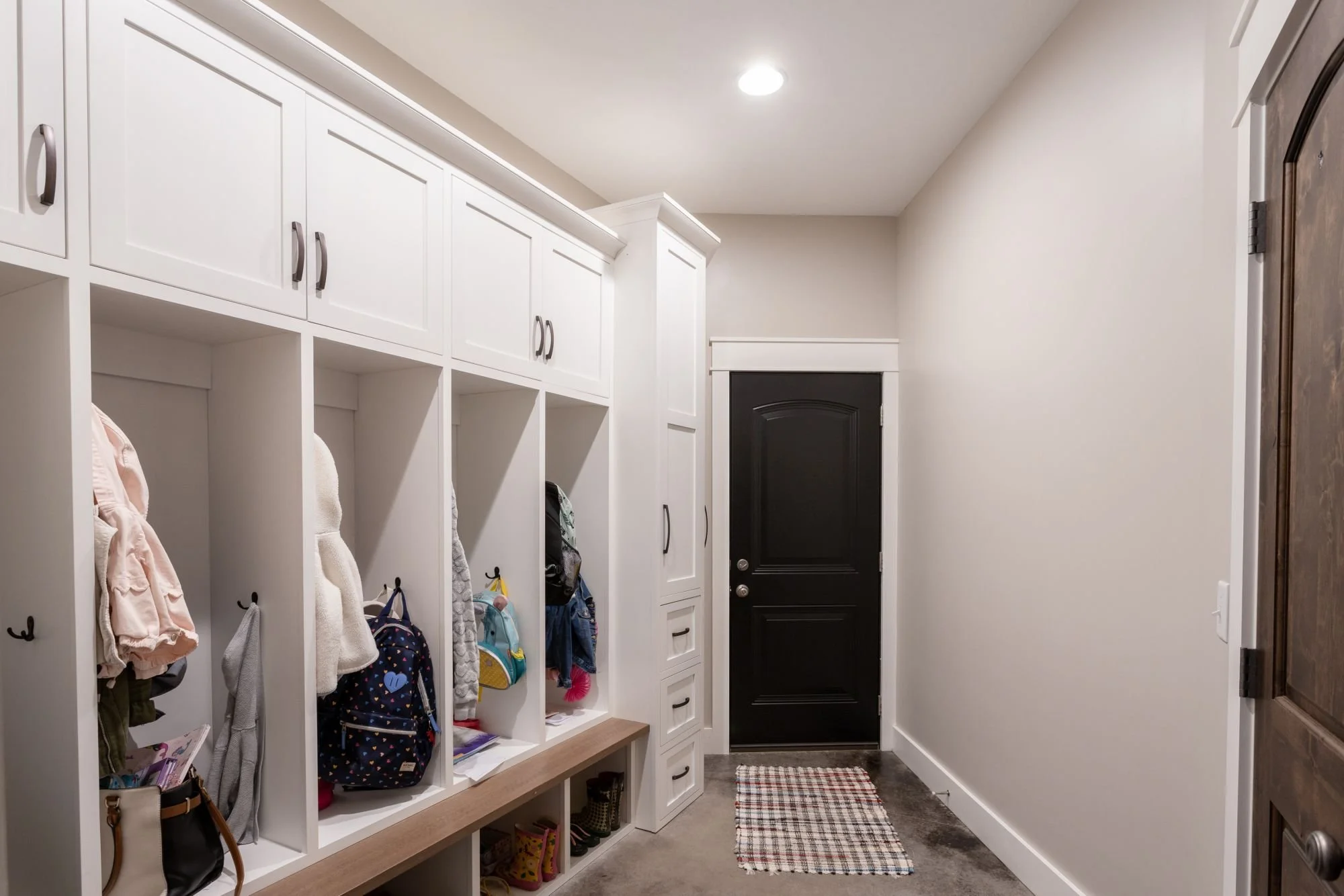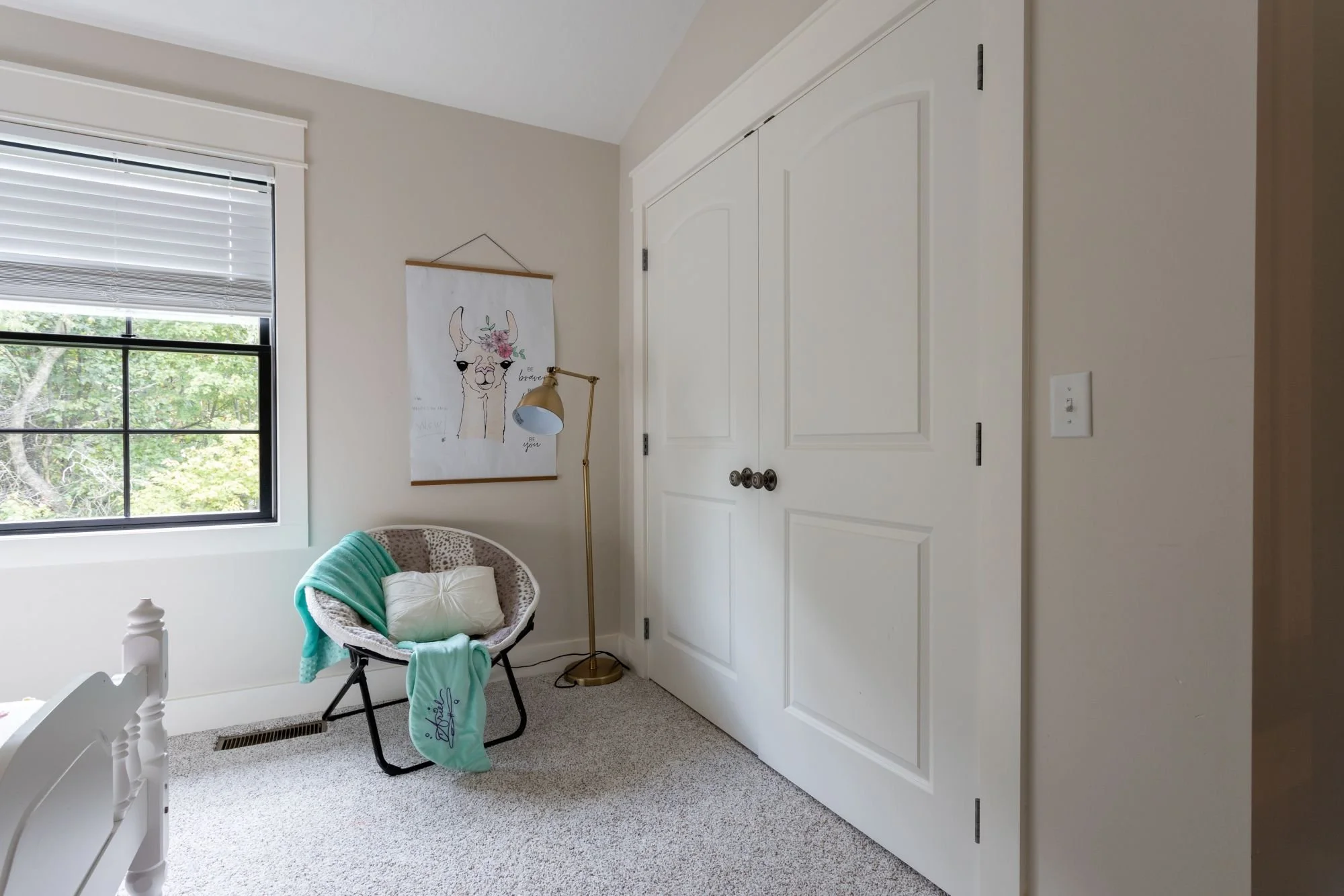 This beautiful hybrid timber frame home built in the hills of Ohio features oak trusses in the great room, as well as the front entry. The dark vinyl exterior pairs well with the stained woodwork throughout the exterior.