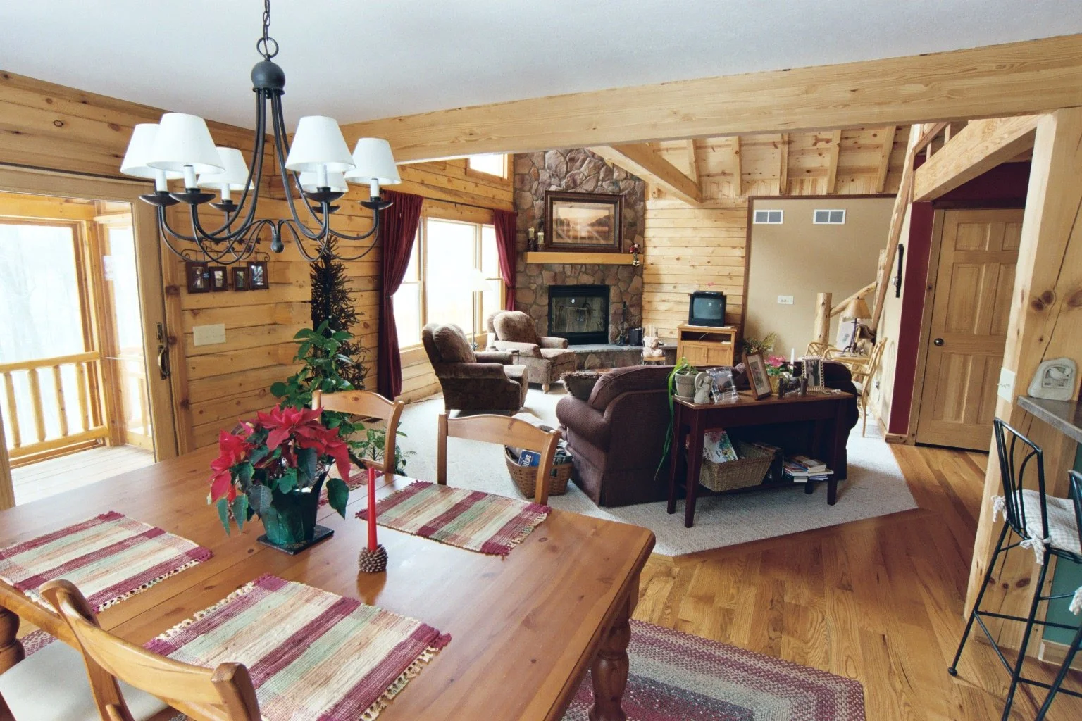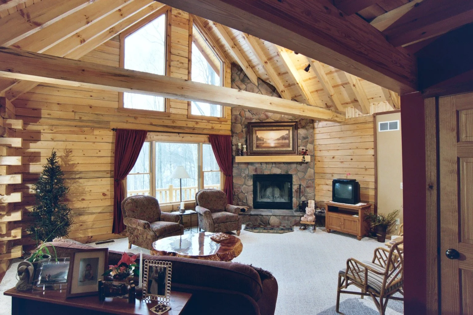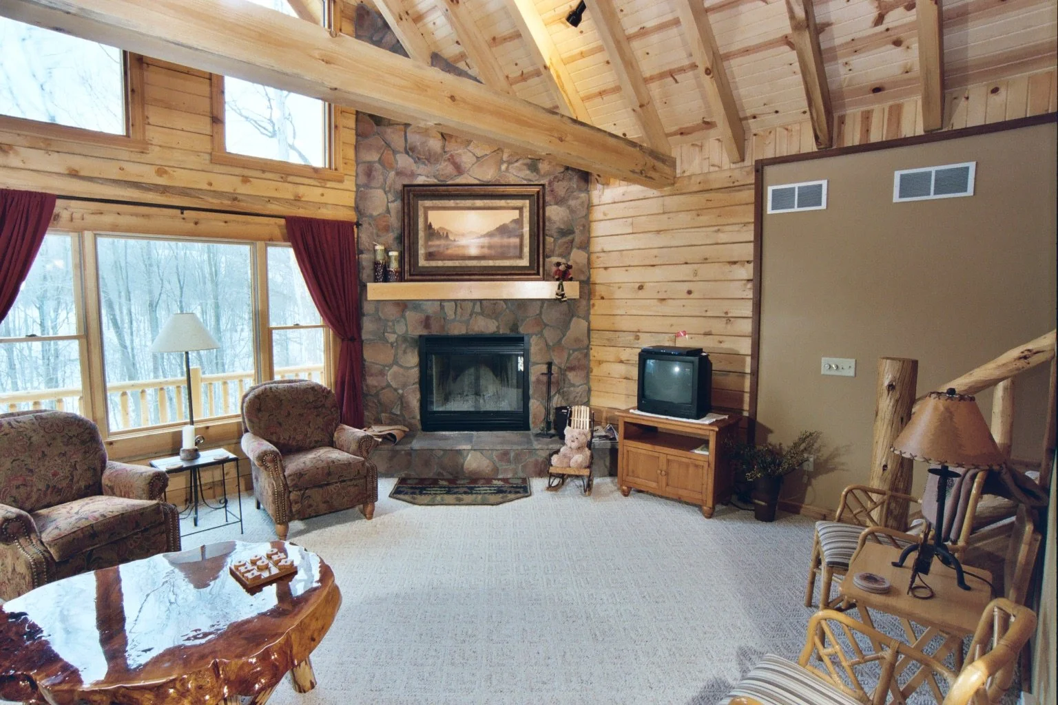 Cozy Fireplace Covered with Stone Veneer in the Great Room