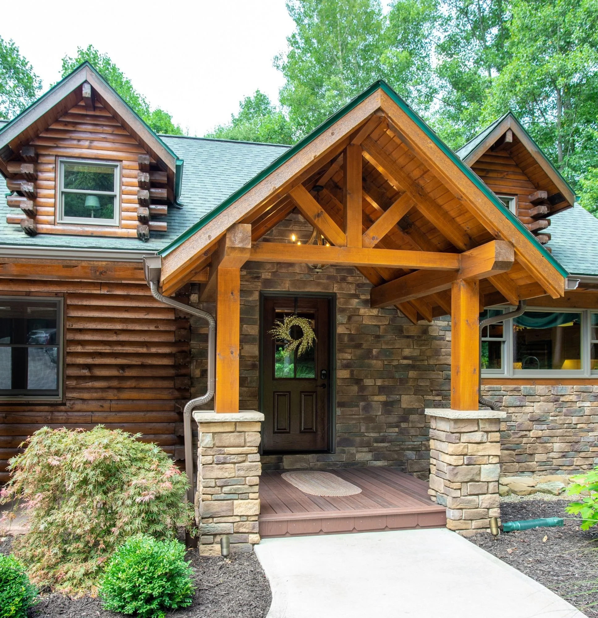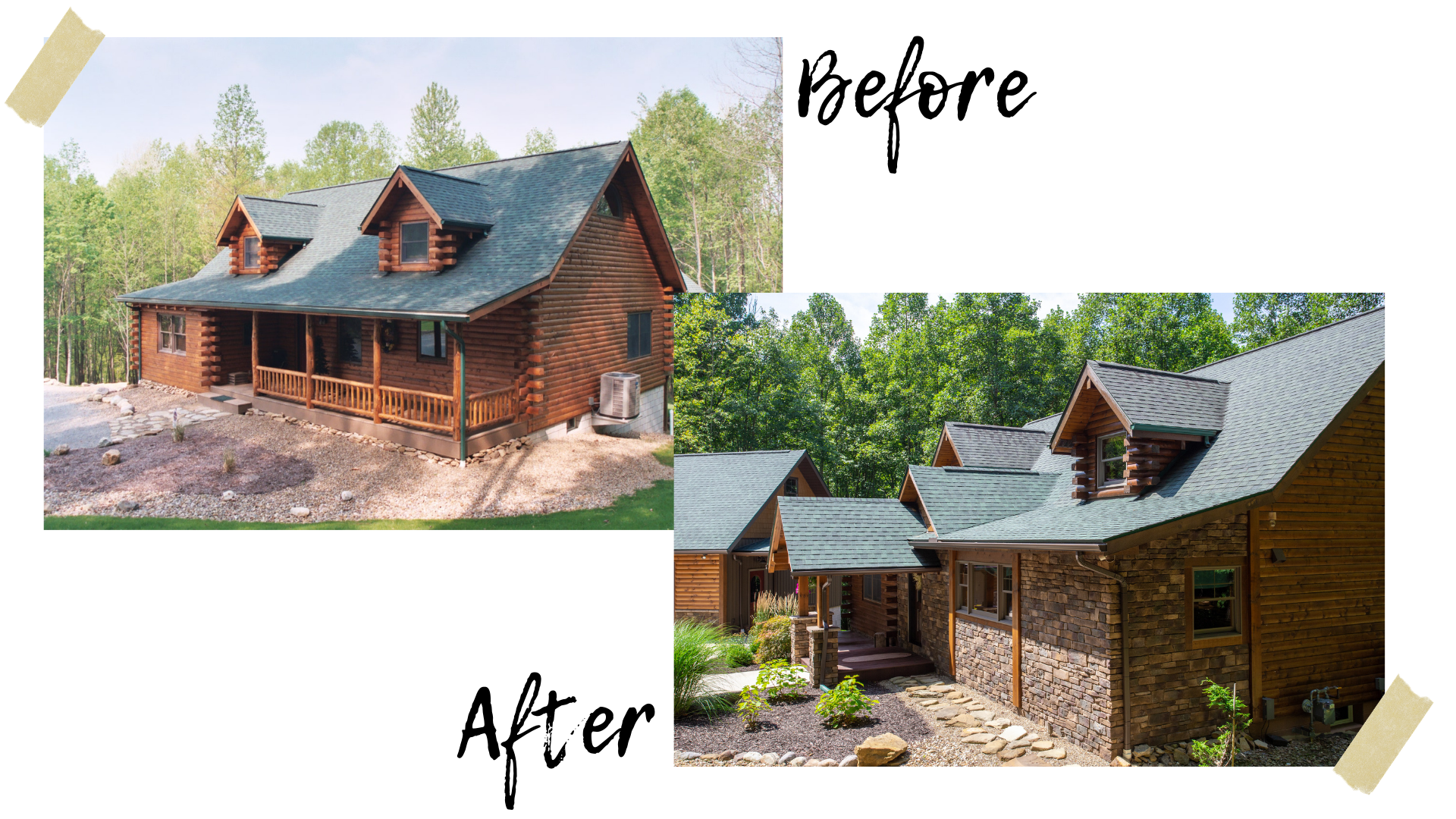 We originally built this log home in 2006. About 11 years later our clients decided they wanted a little extra elbow room so we went straight to work on an addition and new garage for them! We basically brought out the kitchen to the width of the original front porch. We were able to save some money by keeping the original island and some of the other cabinetry. New cabinets and countertops were installed along with new flooring, plumbing and light fixtures. The goal was to coordinate the addition with the existing house, but still wanted to add some flair with the stone veneer.