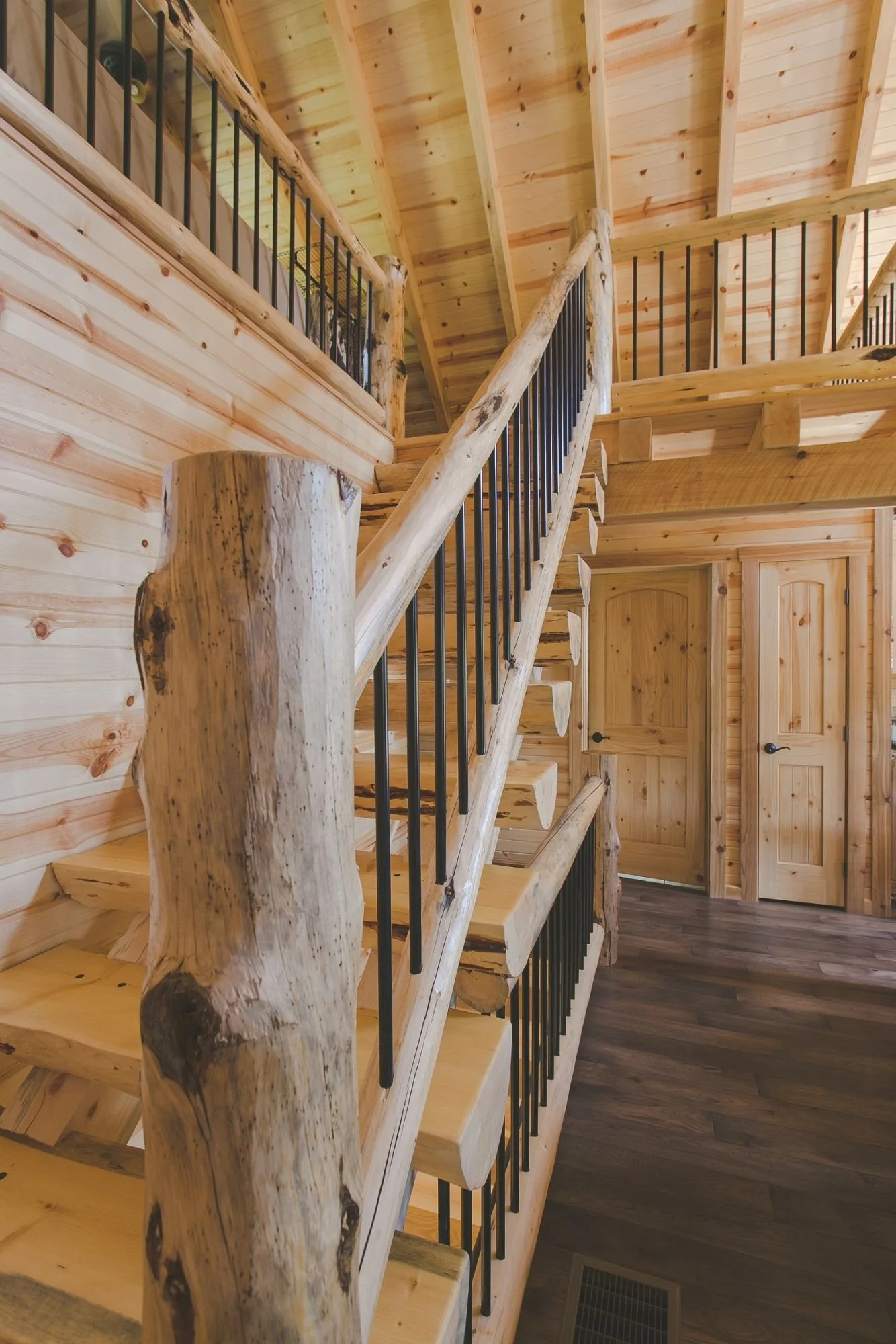 The 8" x 6" Pine logs that the home is framed with, the timbers for the log roof system, porch flooring, exterior doors, and windows were supplied by Appalachian Log Structures - and the rest of the build is all Fairview.