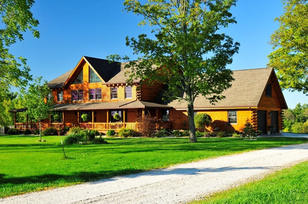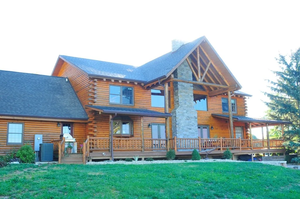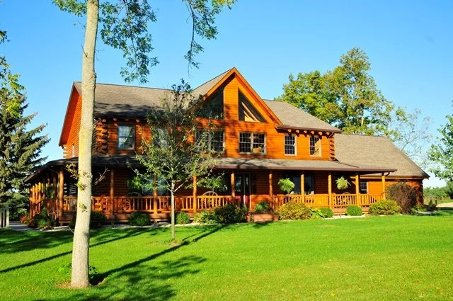 An outstanding 2 story log home and a 2-car full log garage located in Northern OH, is built with 6"x 8" Milled D Pine logs, Rustic Rd posts and Rustic Rd Rafters.