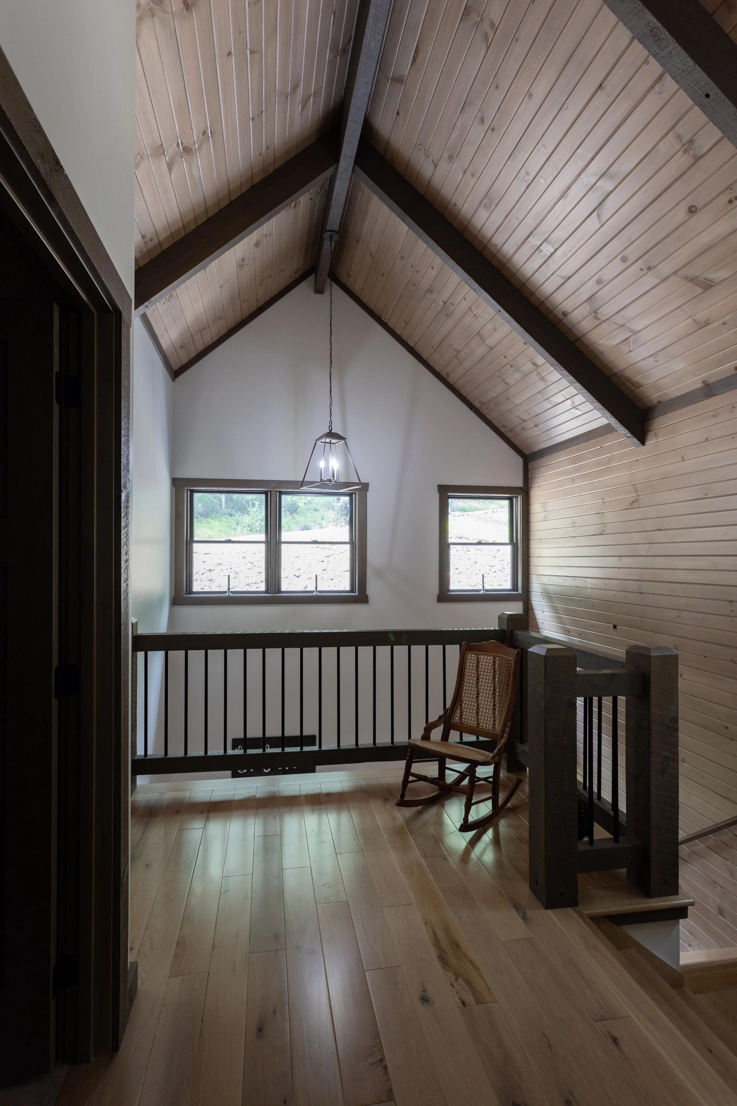 Mixture of drywall and tongue and groove barn siding