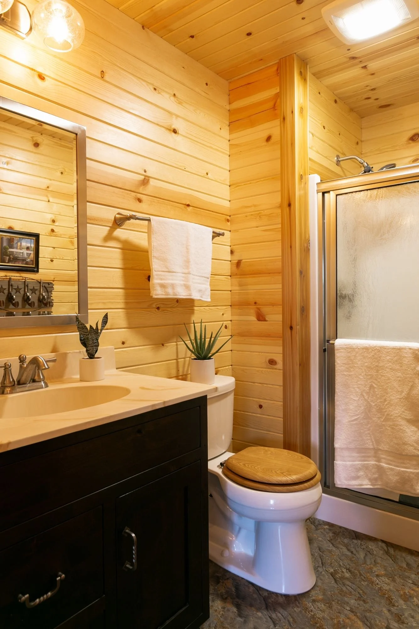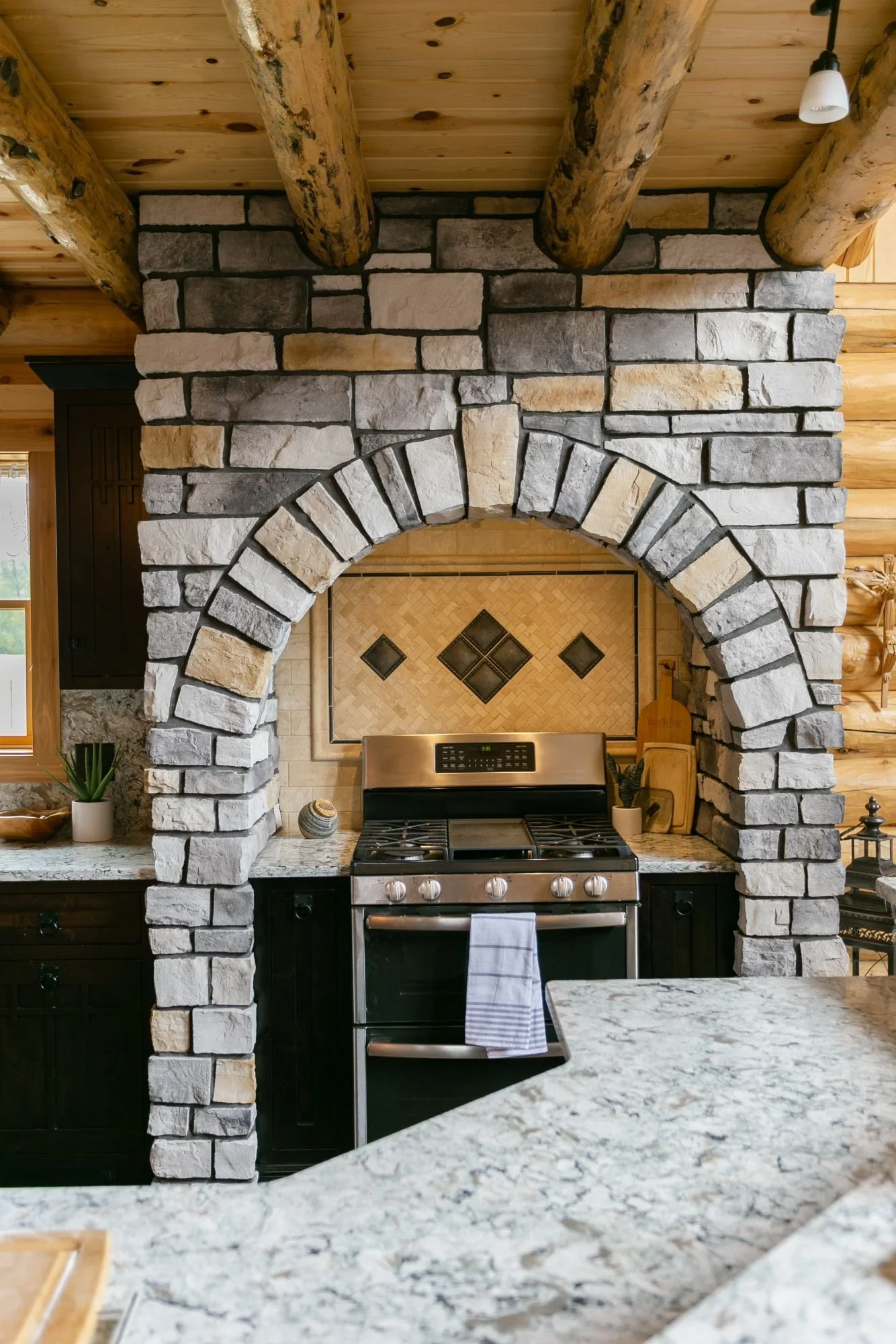 This custom two story log home was built with 10" Swedish Cope Round Logs. It feature an open floor plan with cathedral height ceilings covered with tongue and groove barn siding and rustic rafters. The kitchen is lined with custom cabinetry and accented with stone veneer.