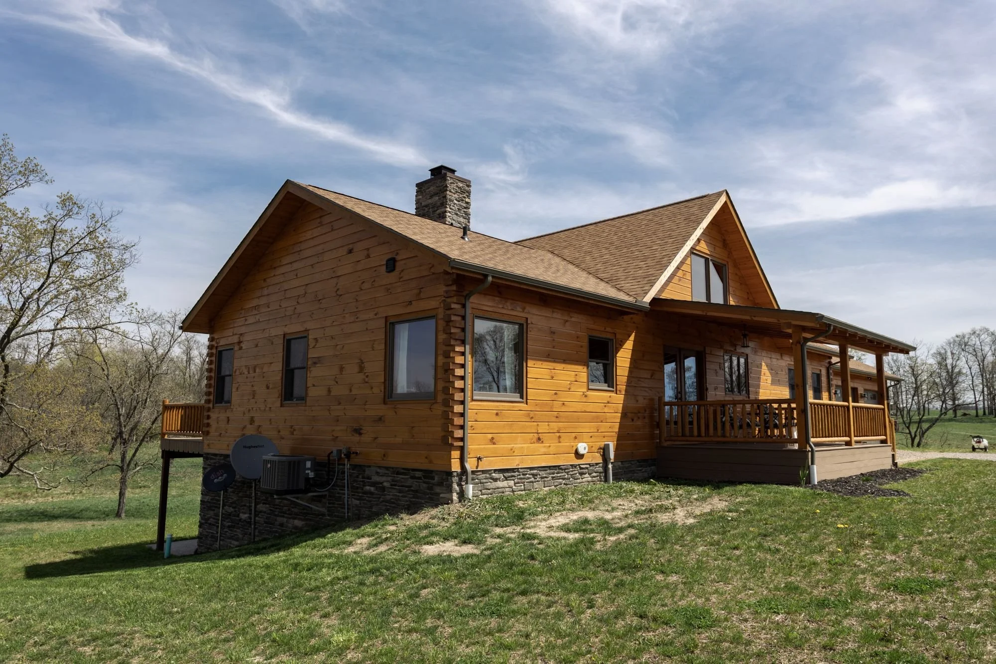 This custom log home is built with 8"x8" Square Eastern White Pine and has dovetail corners! The open concept from kitchen to great room makes this house feel a lot bigger then the square footage shows.